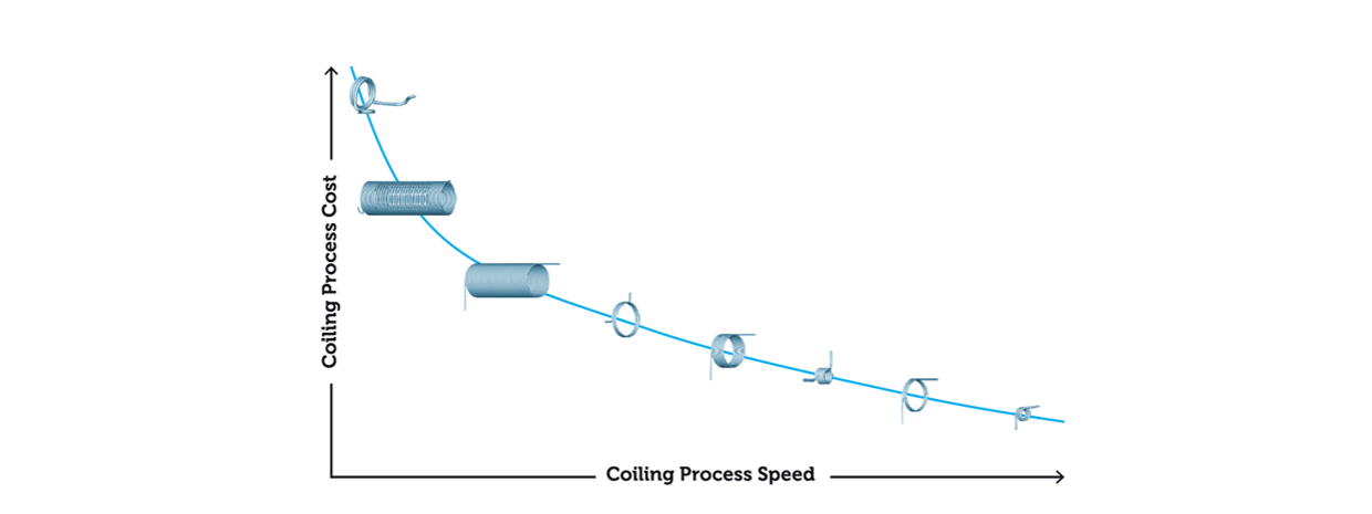 - Process costs: these are driven by the type of spring, process complexity, geometric factors and specific features, such as cleanliness, surface conditions or the envelope, hooks and legs. With a customised and streamlined process, it is possible to achieve double-digit percentage savings in total costs
