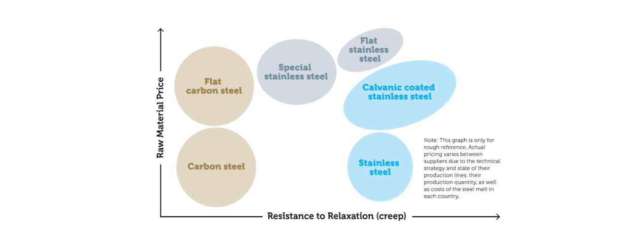 “The choice of raw material depends on factors such as geometric boundary conditions, corrosion resistance, relaxation and the number of use cycles.”