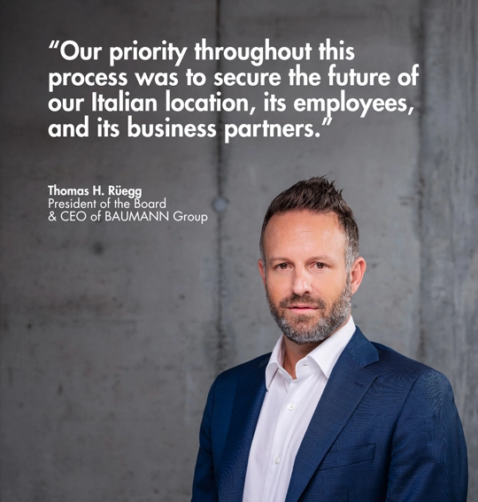 Ermenswil, 2nd December 2025 – BAUMANN Group today announced the successful transition of ownership of its Italian subsidiary, Prodotti BAUMANN s.r.l., to Newport & Co S.p.A., effective November 28th, 2025. This step marks an important milestone in BAUMANN’s strategic transformation into a global specialist, reinforcing our commitment to global growth, a balanced international footprint, and continued portfolio transformation to secure long-term resilience.
